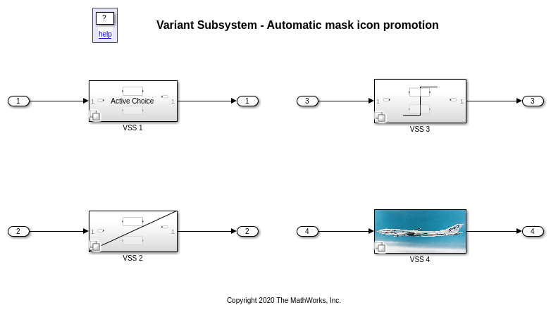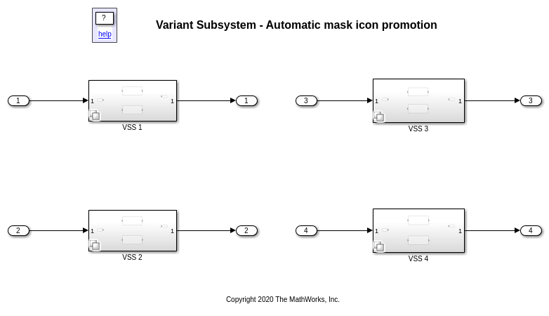 Этот пример демонстрирует, как Simulink® автоматически отображает значок маски активного различного блока на родительском Различном блоке Subsystem. Пример показывает продвижение значка маски для этих типов значков: