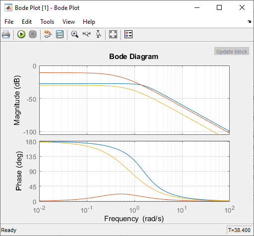 В данном примере блок Bode Plot сконфигурирован, чтобы сохранить вычисленные ответы в рабочей области MATLAB® как LinearReactor структура.