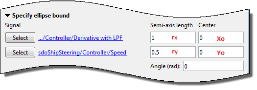 Использование диалоговое окно Create Requirement, чтобы наложить эллиптическое привязало траекторию плоскости фазы двух сигналов в вашем Simulink® модель. Траектория плоскости фазы является графиком двух сигналов друг против друга. Вы задаете радиусы, центр и вращение эллипса ограничения. Вы также задаете, требуете ли вы траектории двух сигналов лечь внутри или снаружи эллипса.