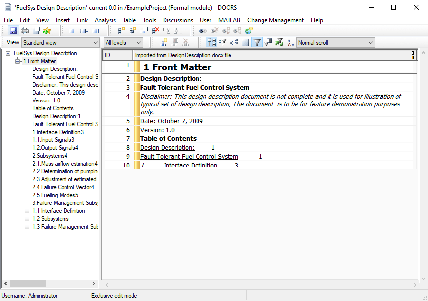 Импортируйте требования из внешних приложений, таких как Microsoft® Word, Microsoft Excel®, IBM® Рациональный® ДВЕРИ®, и Следующее поколение Rational DOORS IBM. Simulink Requirements™ также поддерживает рабочие процессы туда и обратно с файлами ReqIF. Пересмотрите требования при помощи Редактора Требований или путем синхронизации изменений из внешнего документа.