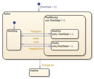 График содержит два сверхсостояния: Active и Inactive. Active утвердите входные события использования, чтобы охранять переходы между различными подсостояниями.