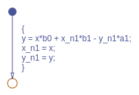 В диаграмме Stateflow добавьте блок-схему с одной ветвью, которая присваивает значения y, x_n1, и y_n1.