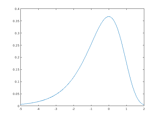 t = [-5:.01:2]; y = evpdf(t);