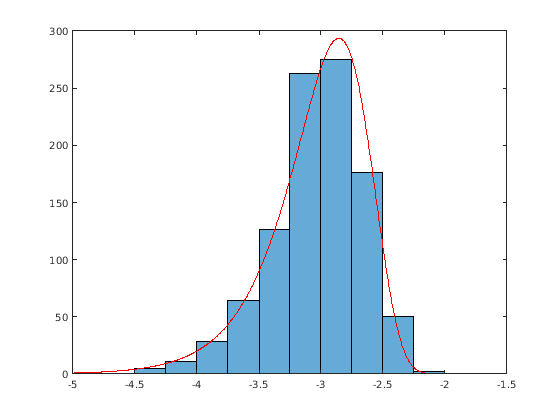 Figure contains an axes object. The axes object contains 2 objects of type histogram, line.