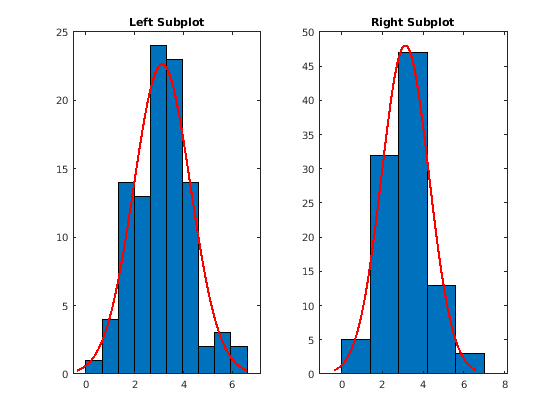histfit( строит гистограмму значений в data)data использование количества интервалов равняется квадратному корню из числа элементов в data и соответствует нормальной функции плотности.