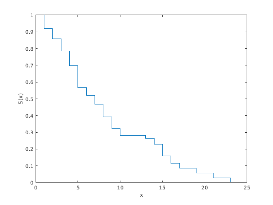 Анализ выживания состоит из параметрических, полупараметрических, и непараметрических методов. Можно использовать их, чтобы оценить обычно используемые меры в исследованиях выживания, оставшемся в живых и функциях опасности, сравнить их для различных групп и оценить отношение переменных предикторов ко времени выживания. Некоторые статистические вероятностные распределения описывают времена выживания хорошо. Обычно используемые распределения экспоненциальны, Weibull, логарифмически нормальны, Берр и распределения Бирнбаума-Сондерса. Функции Statistics and Machine Learning Toolbox™ ecdf и ksdensity вычислите эмпирическое и оценки плотности ядра cdf, совокупной опасности и функций оставшегося в живых. coxphfit соответствует Cox пропорциональная модель опасностей к данным.