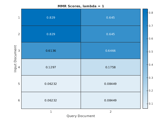 Наконец, вычислите баллы снова и установите значение lambda к 1. Когда значение lambda равняется 1, документы, важные для запроса, дают к более высоким баллам несмотря на другие документы, дающие к рекордам.
