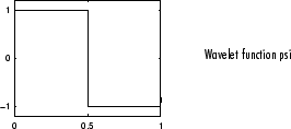 Любое обсуждение вейвлетов начинается с вейвлета Хаара, первого и самого простого. Вейвлет Хаара прерывист, и напоминает ступенчатую функцию. Это представляет тот же вейвлет как Daubechies db1.