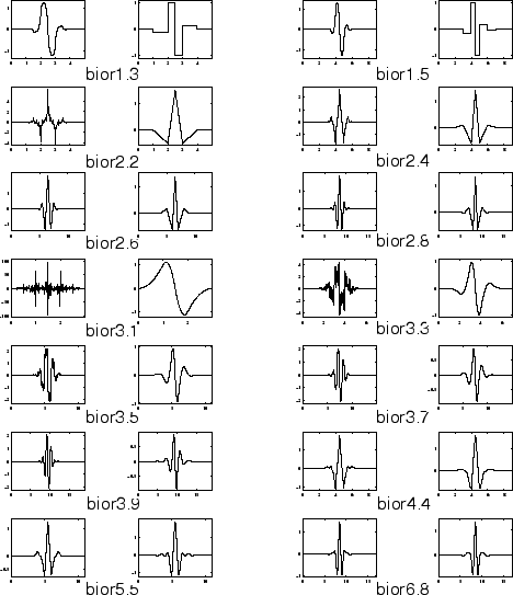 Это семейство вейвлетов показывает свойство линейной фазы, которая необходима для реконструкции изображений и сигнала. При помощи двух вейвлетов, один для разложения (на левой стороне) и другой для реконструкции (на правой стороне) вместо того же самого одно, выведены интересные свойства.