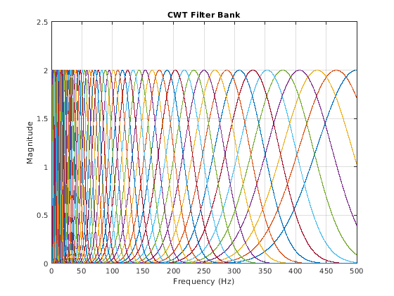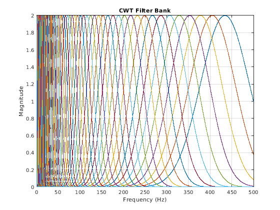 [ возвращает минимальные и максимальные частоты полосы пропускания вейвлета в циклах/выборке для сигнала длины minfreq,maxfreq] = cwtfreqbounds(N)N. Минимальные и максимальные частоты определяются для значения по умолчанию Морзе (3,60) вейвлет. Минимальная частота определяется так, чтобы в два раза стандартные отклонения вейвлета по умолчанию охватили N- укажите сигнал на самую грубую шкалу. Максимальная частота такова, что самый высокий полосовой фильтр вейвлета частоты спадает до ½ из своей пиковой величины на частоте Найквиста.