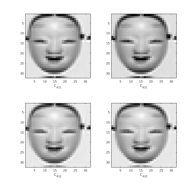 Выход XR массив ячеек, содержащий четыре изображения. Каждое изображение 256 256. Отобразитесь коэффициенты раньше восстанавливали изображения.