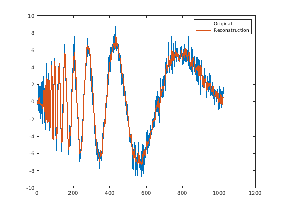 возвращает обратное 1D комплексное двойное древовидное преобразование коэффициентов приближения итогового уровня, xrec = idualtree(A,D)A, и массив ячеек коэффициентов вейвлета, DA и D выходные параметры dualtree. Для реконструкции, idualtree использование два набора фильтров: