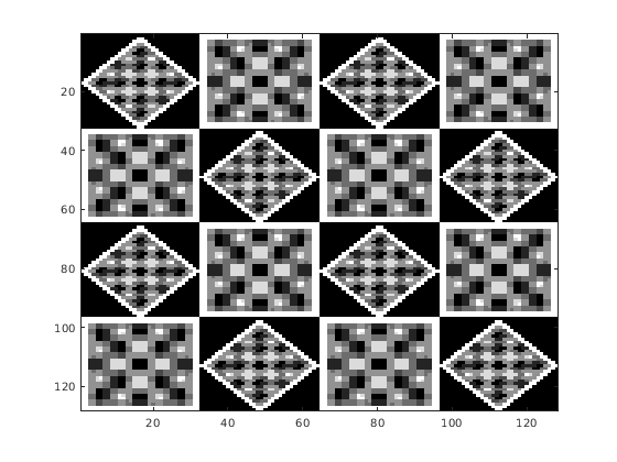 x = idwt2(cA,cH,cV,cD,wname) выполняет одноуровневую двумерную реконструкцию вейвлета на основе матрицы приближения cA и матрицы деталей cH, cV, и cD (горизонталь, вертикальная, и диагональная, соответственно), использование вейвлета задано wname. Для получения дополнительной информации смотрите dwt2.