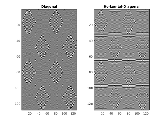 Figure contains 2 axes objects. Axes object 1 with title Diagonal contains an object of type image. Axes object 2 with title Horizontal-Diagonal contains an object of type image.