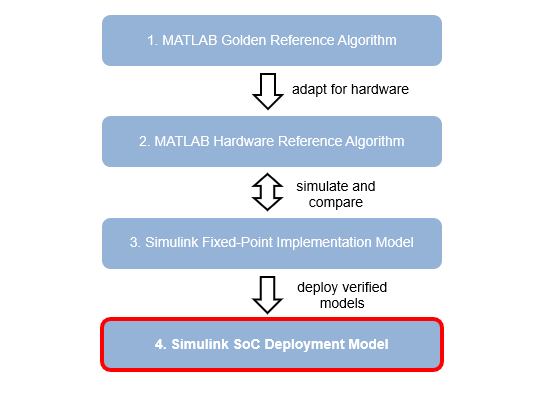 Эти примеры используют техники моделирования элемента кода аппаратного программного обеспечения, чтобы реализовать алгоритм, показанный в схеме. Они снова используют модели Simulink®, представленные в Поиске Ячейки HDL NR, Восстановлении MIB HDL NR и примерах NR HDL SIB1 Восстановления, чтобы сгенерировать HDL для логики FPGA. Они затем добавляют все моделирование программного обеспечения и взаимодействие через интерфейс, требуемое реализовывать алгоритм в режиме реального времени на оборудовании.