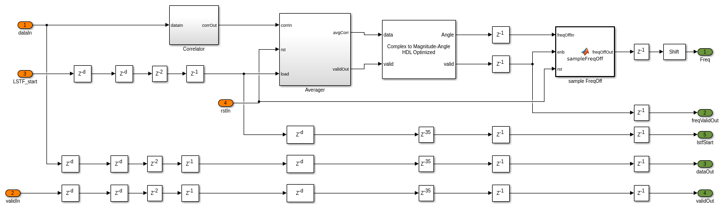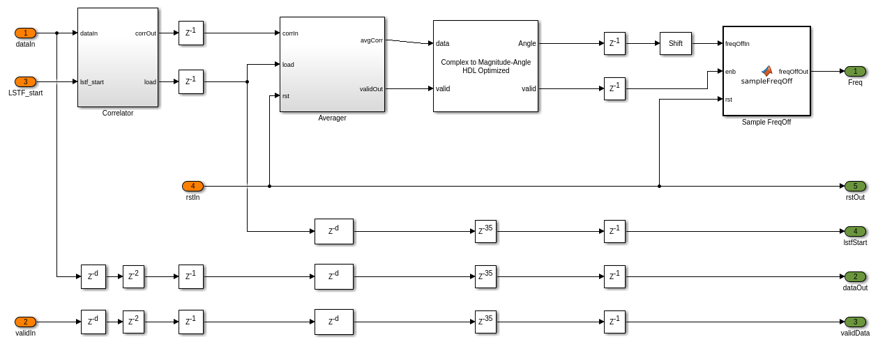 open_system([model_name '/WLANTimeAndFrequencySynchronization/Coarse CFO Estimation and Correction/Coarse CFO Estimation']);